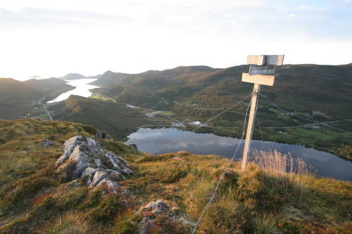 Islendingasjoppa Eg kláraði síðasta bjórinn min þegar ég var að bíða eftir síðari ferjuni þennan daginn, og rósalega var það notarlegt, enn eftir að til lands er kominn hinumeginn eru einungis spölkorn inn í Larsnes, þannig að ég brunaði með hraði inn í þetta litla þorp og hringdi aftur í Gunna verkstjóra, boðaði komu mína og spurðist til vega. Það er ekki laust við að hafa aðeins dregið úr manninn að heyra að vinnubúðirnar voru ekki alveg handan við hornið eins og ég átti von á. það séu bara 10 km eftir og tvær brekkur önnur 200m hækkun og hin þó bara 100 metrar. Gunni ætlaði að koma á móti mér og vísa mér veginn síðasta spölinn, við hittumst síðan þegar ég var kominn langt upp í fyrri brekkna.